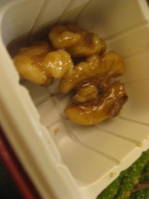 付け合せに、パイナップルとくるみと、アスパラが入ってます。(写真はちょっとぼけてますが…)