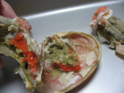それから、もうひとつ、最近、必須なのは、活けガニです。