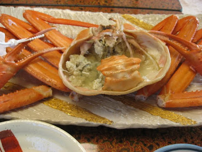 ゆでがに1杯、かにのおさしみ、陶板焼き。ほんと、かに尽くしです。