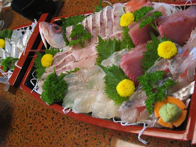 冒頭の写真は、地のお魚のおさしみです。特別にお願いして、子供らはかにが食べれないので、その分、おさしみに替えてもらいました。親の2人分も合わせて、これだけのおさしみをつけていただけました。のどぐろ、あじ、たい、さより。すごくおいしかったですね。さしみ好きな子供らでも食べ切れなかったぐらいのおさしみを出していただけました。